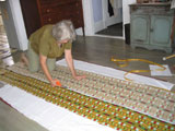 Don't get dizzy. This is Patty measuring and cutting the lengthwise edge. |